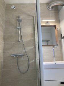 - Douche à l’italienne extra-plate pour un accès sans obstacle.