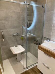 - Barres de maintien et sièges de douche rabattables pour plus de sécurité.